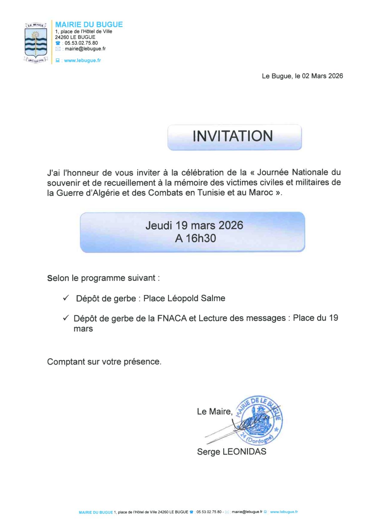 Célébration de la « Journée Nationale du souvenir et de recueillement à la mémoire des victimes civiles et militaires de la Guerre d'Algérie et des Combats en Tunisie et au Maroc ».