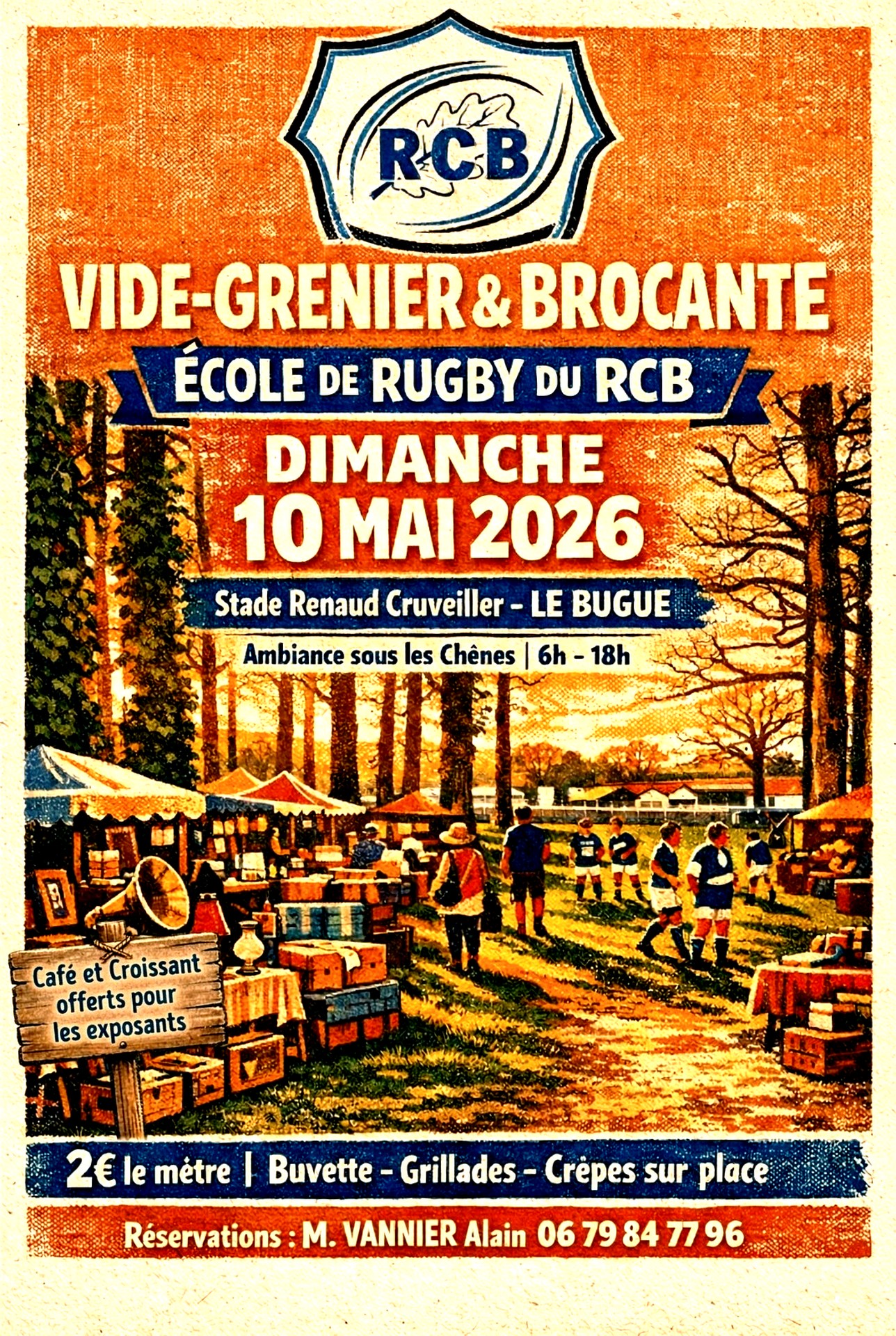 DIMANCHE 10 MAI 2026 au stade de rugby Renaud CRUVEILLER, 05 rue du stade 24260 LE BUGUE de 06h00 à 18h00