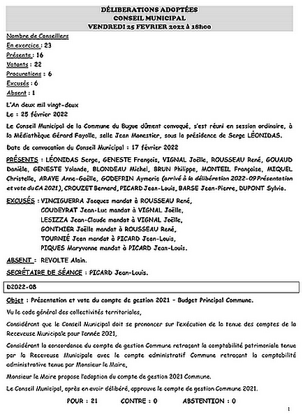 Délibérations adoptées lors du conseil municipal du 25 février 2022