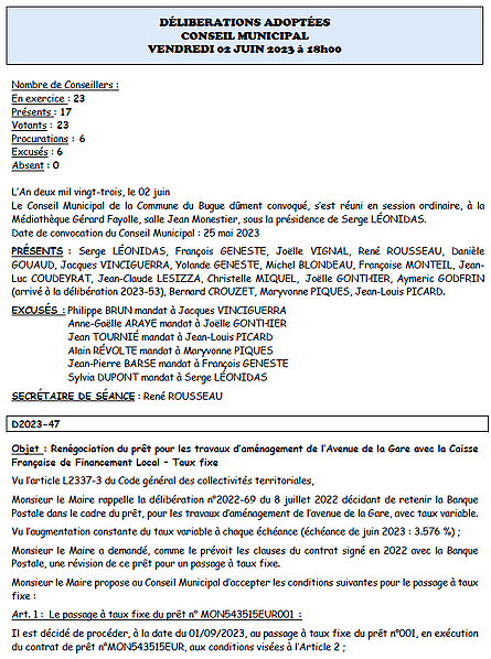 Délibérations adoptées lors du conseil municipal du 02 juin 2023