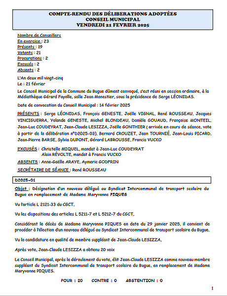 Délibérations adoptées lors du conseil municipal du 21 février 2025
