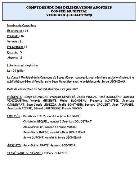 Délibérations adoptées lors du conseil municipal du 04 juillet 2025
