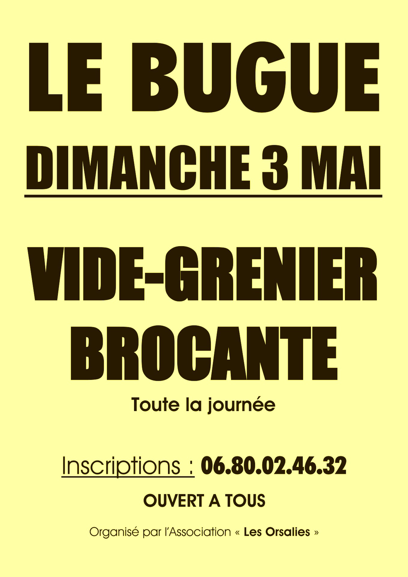 VIDE-GRENIER BROCANTE organisés par l'association Les Orsalies